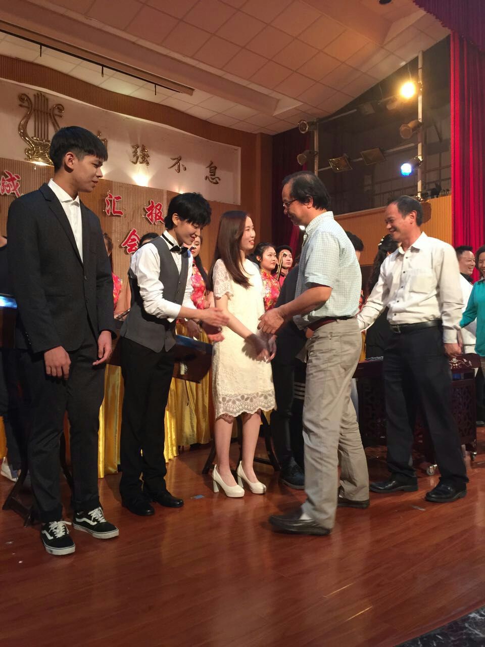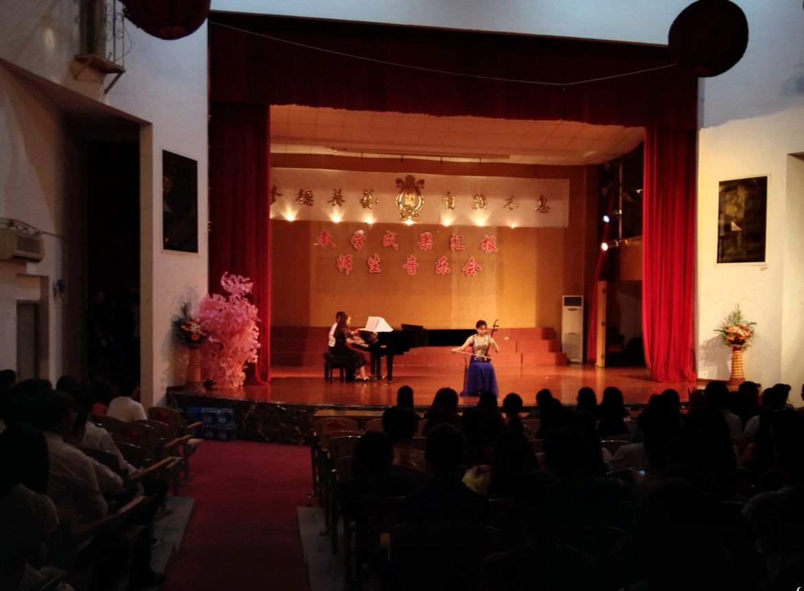 2013级吴诗菲同学演绎的二胡独奏《雪山塑魂--献给长征将士的音画》,把结构简洁明的乐曲以全新而强烈的民族音乐风采呈现给观众。2015级丁若彬的一首民歌《玛依拉变奏曲》经过改编,表现得高亢嘹亮,风味独特。 2015级华晓蕾《蓝色爱情海》唱出了诗的韵律与音乐旋律的和谐统一。 2015级双胞胎兄弟侯佳熠、侯佳炜带来钢琴四手联弹《斯拉夫舞曲》、2014级陈玲、吴雯、翁鲤娜、杨心如、田婷娜四人古筝小合奏《云之南》、2013级林溥泉带来小提琴独奏《门德尔松e小调小提琴协奏曲第一乐章》都带给观众曲风各异、表现清新的艺术感染力。