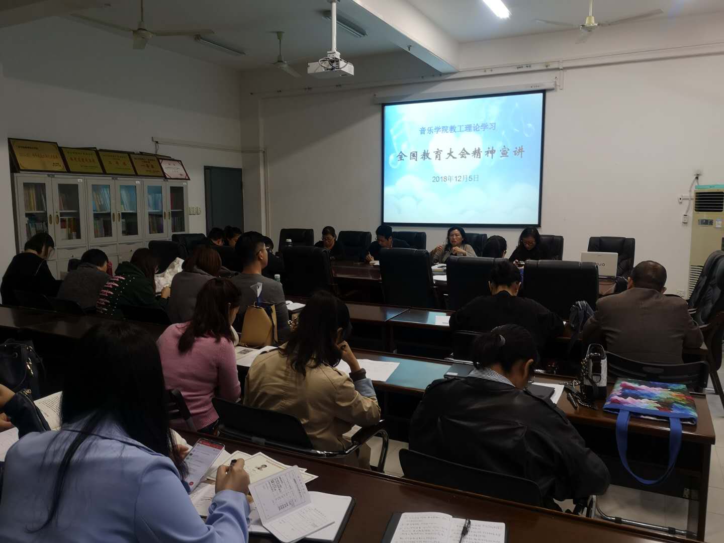 12月5日下午,御书屋 在艺术楼会议室召开全院教工大会,专题学习全国教育大会精神。院党政班子成员及全体教职工参加,会议由院党党委书记杨小高主持。