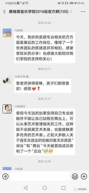 曾弘艺在讲座中还介绍了青少年艺术团如何组建与运作的相关知识。他认为同学们在现阶段还是需要夯实基本功,提高自己的竞争力,提高知识面的广度、保持学习能力,在实习方面优先选择大平台,主动学习新的知识。