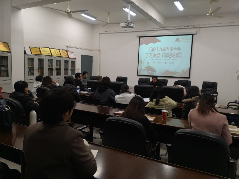 12月16日,陆徽副院长和刘淘副院长给教工党支部党员上了两堂党课,分别解读了《规划建议》和全会精神,从《规划建议》中的民生措施、五中全会释放的未来中国发展的重要信号等角度进行解读;从准确把握2035年远景目标到领会习近平总书记关于谋划“十四五”时期我国改革发展的重要思想,结合自己的学习感想,带领大家从不同角度深入学习了十九届五中全会精神。