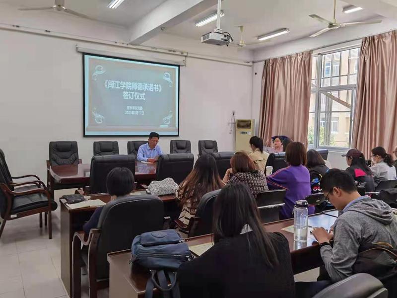 为深入贯彻省委巡视问题的反馈整改,进一步加强学院师德师风建设,强化教职工师德师风意识,新学期伊始,音乐学院党委就组织全体教工进行师德师风再学习,再要求,再承诺行动。