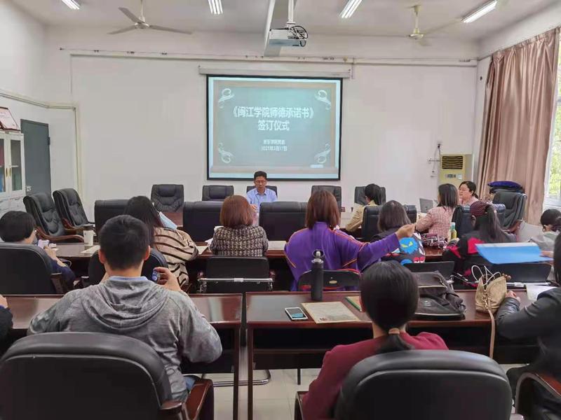 3月10日下午,党委书记杨小高带领全体教工学习解读《御书屋 教师师德师风考核办法(试行)》的内容、师德师风警示案例学习;3月17日下午,学院组织全体教职工学习学校教师工作部7号文件《关于签订师德承诺书和建立师德档案的通知》精神,现场签订了师德承诺书。