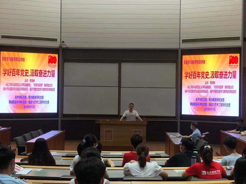 5月12日,美术学院、商学院、音乐学院、服装学院联合开展党史学习教育专题讲座,邀请御书屋 马克思主义学院“形势与政策”教研室主任、福州市纪委党内法规宣讲团成员、福州市委党史学习教育宣讲团成员黄海林副教授授课。讲座由音乐学院副书记李友山主持,四个学院党员学生100余人到场聆听。