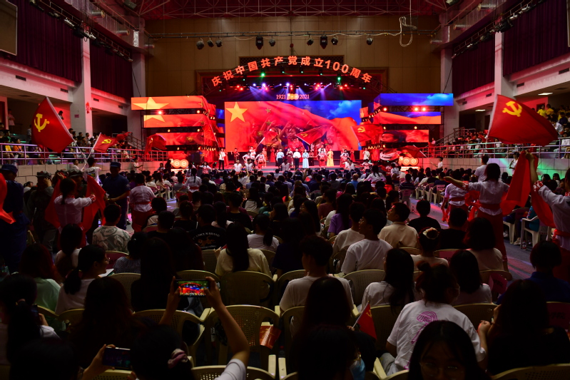 6月28日晚,御书屋 举办庆祝中国共产党成立100周年文艺晚会。一场壮丽的航程铺陈开来,一曲对党的颂歌激昂嘹亮。校领导王宗华、陈曦、刘元芳、李新贤、傅高升、陈兴明、郑煦林和师生代表观看了这场盛宴。