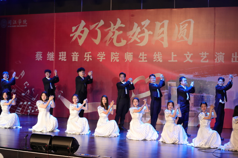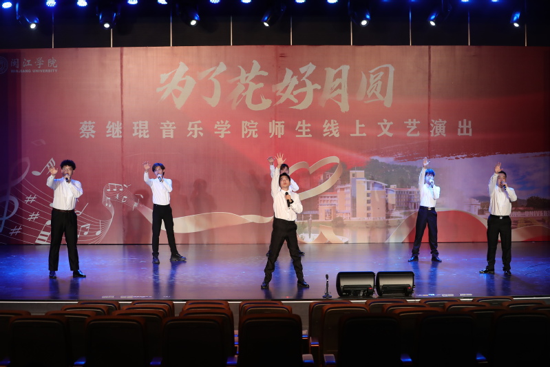 值得一提的是,蔡继琨音乐学院党委书记杨小高为了此次的演出通宵熬夜创作出一首原创主题曲《为了花好月圆》,由学院副院长陆徽倾情演唱。疫情当前,为了千家万户的花好月圆,让我们全校师生心连心、肩并肩,全力配合疫情防控工作,就地过节,守护好后方。歌曲激情澎湃,唱出了闽院师生众志成城铸牢疫情防线的精神长城,为师生送去了中秋月圆的深情祝福。