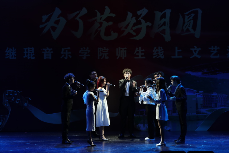 值得一提的是,蔡继琨音乐学院党委书记杨小高为了此次的演出通宵熬夜创作出一首原创主题曲《为了花好月圆》,由学院副院长陆徽倾情演唱。疫情当前,为了千家万户的花好月圆,让我们全校师生心连心、肩并肩,全力配合疫情防控工作,就地过节,守护好后方。歌曲激情澎湃,唱出了闽院师生众志成城铸牢疫情防线的精神长城,为师生送去了中秋月圆的深情祝福。