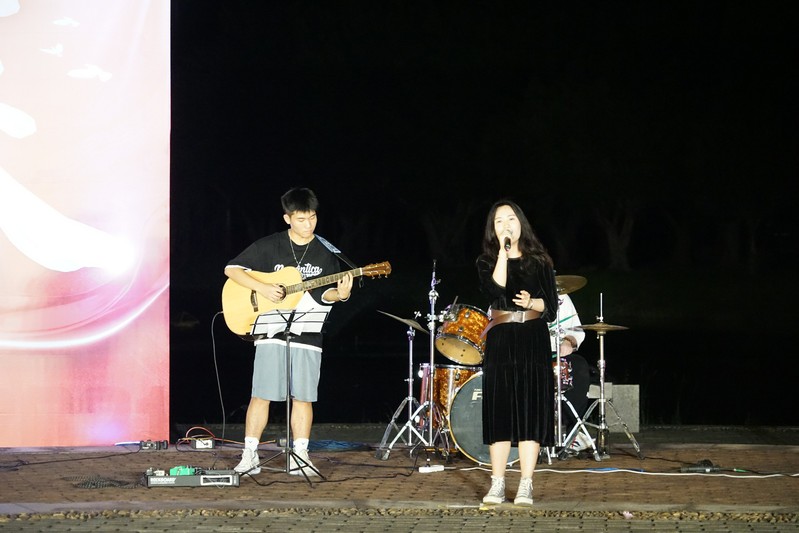 《刻在我心底的名字》年少时遇见的那个他,现在还在身边吗?全场观众打开手机后置灯,挥动双手,音乐学院的林沙朗、邓馨迤带来女生二重唱,我们可以相信爱,希望有一天我们喜欢谁都不再奇怪。由失眠汽水乐队带来《隐形的翅膀》《呼吸决定》,让我们感受到了,我们每一个人都有一双隐形的翅膀,它帮助我们追逐梦想,走向美好的明天。正如我们的祖国母亲,她经历了72年的风风雨雨,走到今天。我们相信,我们每一个华夏儿女,都是祖国母亲隐形的翅膀。