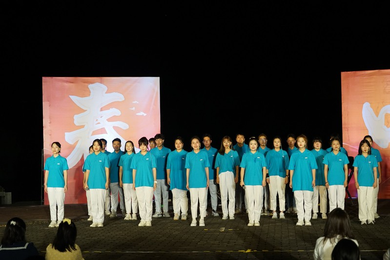 音乐学院合唱团带来合唱《我爱你中国》,泱泱华夏,一撇一捺皆是栋梁,我神州大地,一丝一念皆是未来,我浩浩九州,一文一墨皆是骄阳,如果奇迹有颜色,那一定是中国红。音乐学院段锦城演唱的《那些你很冒险的梦》动听的歌声深入人心,全场观众挥动着手中的手电筒一起合唱,全场氛围感拉满。男女生二重唱《R&B all night》让我们一起沉浸在摇滚与饶舌的欢乐世界中,感受属于这场晚会特有的浪漫。小合唱《新的天地》千里万里,阳光在心里。我的梦想,照耀前方。你的信仰,点燃勇气,我们一起奋进接力!