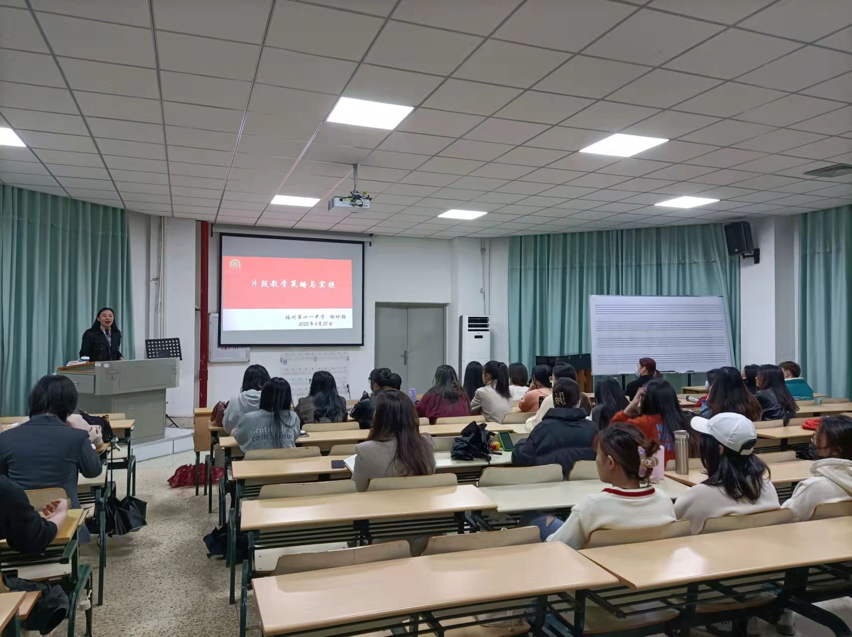 4月20日下午15:00,福州第十一中学音乐教师、校团委书记兼德育与学生发展中心副主任徐珍颖老师带来了题为“片段教学策略与实操”的讲座。徐老师提前找到5名18级和19级音乐学(师范)班的同学,要求她们每人在讲座中呈现10分钟的教学片段,并现场进行点评。同学们纷纷表示这样的讲座形式别开生面、亲切生动,对于提升片段教学的实操能力有较好的裨益。