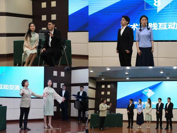 讲座上,陈蔚结合自身丰富经验,针对声乐表演专业的特点,以歌剧《再别康桥》为蓝本,从背景资料、采风、人物分析、人物关系的建立和变化、通读剧本、音乐作业和音乐台词坐排以及戏剧排练、试装、合乐、合成演出等多要素出发,讲解和欣赏相结合,详细阐述了歌剧表演的方法和演员所应具备的素质。在互动交流环节,陈蔚对两组学生表演的《一首桃花》和《再别康桥》唱段进行了现场指导。陈蔚导演将自己在专业上高要求高标准的准则寄语师生,希望同学们在艺术学习的道路上夯实进取,将文化繁荣作为艺术从业者的不懈追求。
