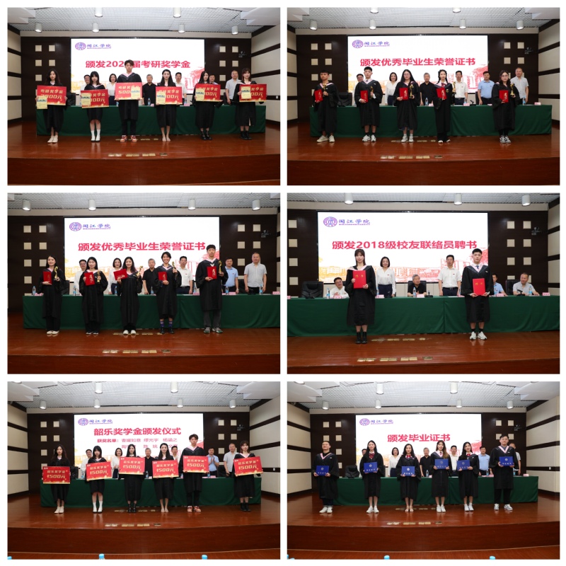 典礼在雄壮的国歌声中拉开帷幕。刘淘副院长宣读了御书屋 2022届本科生毕业生及学位授予学生名单。杨小高书记宣读荣获御书屋 2022届优秀毕业生、本科生考研奖学金、2018级校友联络员名单。随后与会嘉宾为各类获奖毕业生代表颁奖。