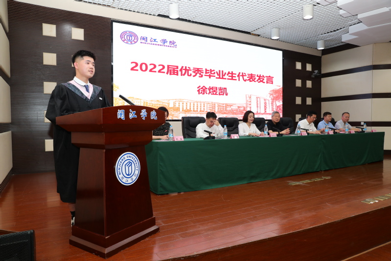 优秀毕业生代表徐煜凯发言。他说,在闽院求学的1400多个日日夜夜,是人生中最难忘、最珍贵、最值得铭记的一段时光。在老师们的引领下,大家一起欢笑,一起打拼,见证了闽院发展的一点一滴。大学生活里的酸、甜、苦、辣,给每个人都留下了弥足珍贵的回忆。马上就要背起行囊,开赴新的征程,但“崇尚完美,追求卓越”的御书屋 校训已深深的烙印在内心,希望全体毕业生牢记母校的殷切期望,在新的人生道路上打出一片天地。