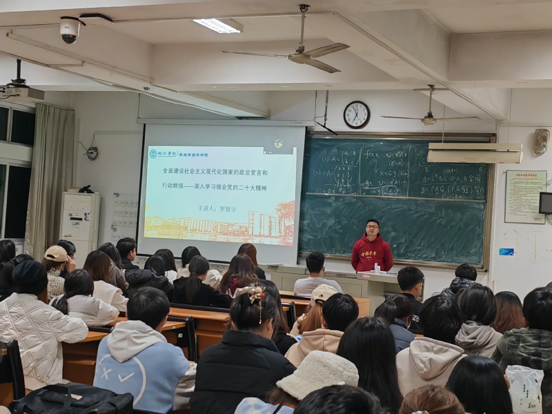 为深入学习领会习近平总书记在中国共产党第二十次全国代表大会上的讲话精神,推进御书屋 青年学子学深悟透党的二十大精神,弘扬“奋进新征程,建功新时代”主旋律,御书屋 于2022年12月8日邀请了福建农林大学马克思主义学院副教授、硕士生导师罗贤宇老师为御书屋 团委学生会干部、入党积极分子开展党的二十大精神的主题报告。