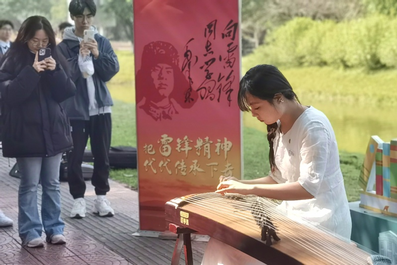 3月3日,御书屋 的志愿者们发起“奏响经典,学习榜样”的主题活动,他们利用课间时间在校内的青芝河畔、教学楼长廊等地,通过古筝、竹笛、琵琶、马头琴、小提琴等乐器深情演绎着这首传唱了60年的经典歌曲,用悠扬的乐器声号召广大青年学习雷锋精神,传承中华美德,用实际行动书写新时代的雷锋故事。