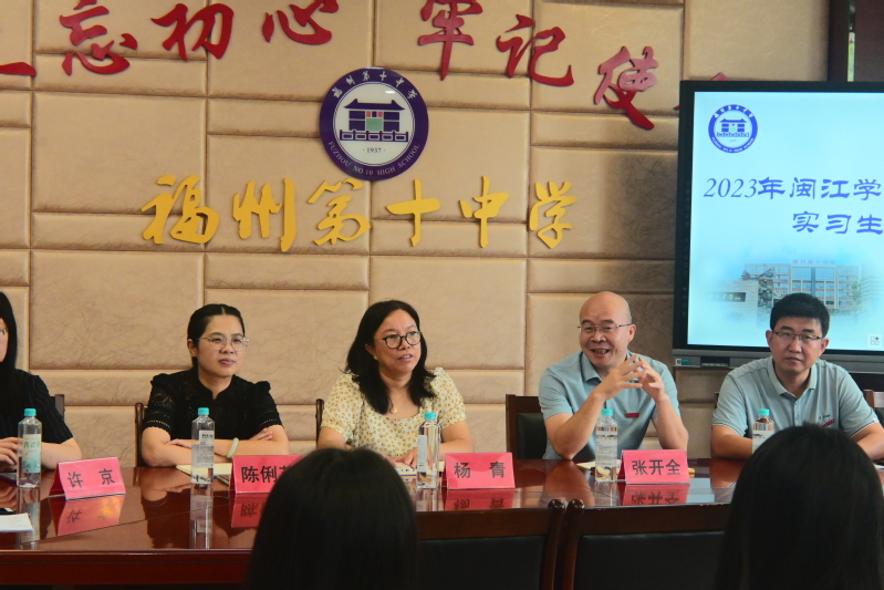 见面会上,杨青校长代表福州第十中学对实习生的到来表示欢迎,详细介绍了学校历史、办学特色、所获荣誉以及音乐组的师资情况。她希望实习生们尽快转变角色融入学校,在实习期间多学、多问,加强沟通与反馈,积极参与班级管理,努力提升自己的专业本领。三位副校长及教务处、德育处、音乐学科组的老师分别就各自负责的工作对实习生进行了简要的说明。