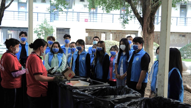 现场观摩环节中,同学们在物业负责人的带领下来到附近垃圾分类亭进行垃圾分类的实践。两位保洁阿姨现场向同学们演示如何正确地对各类垃圾进行分类,以及分类中所需注意的事项。