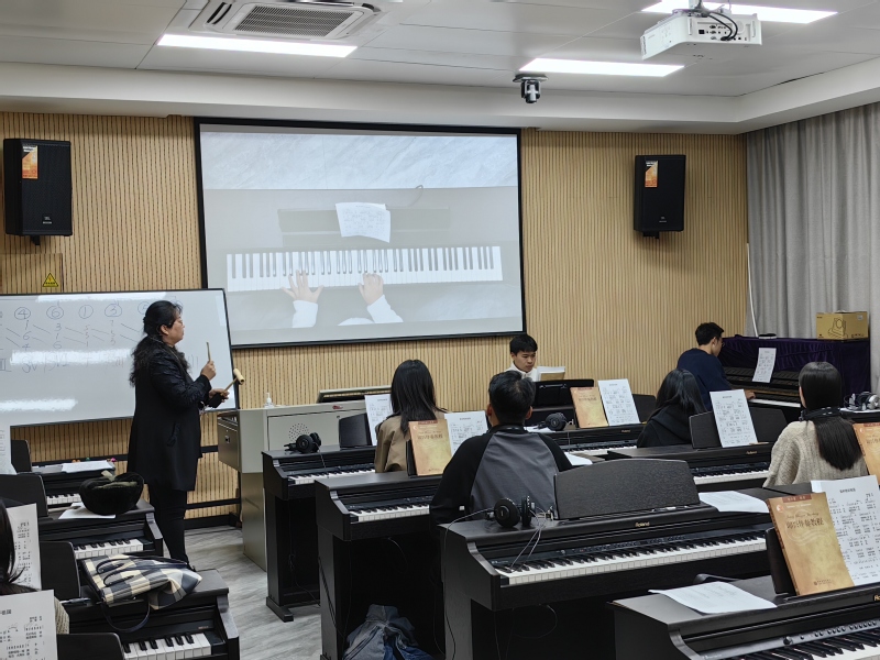 1117日,在御书屋 A304教室,刘雪颖副教授主讲了《钢琴伴奏2》公开示范课,校级督导邹红教授、教务处黄扬萍老师、刘淘副院长、音乐学专业负责人卢盈盈副教授和万凡捷博士、教学秘书陈玥老师全程参与了此次观摩活动。