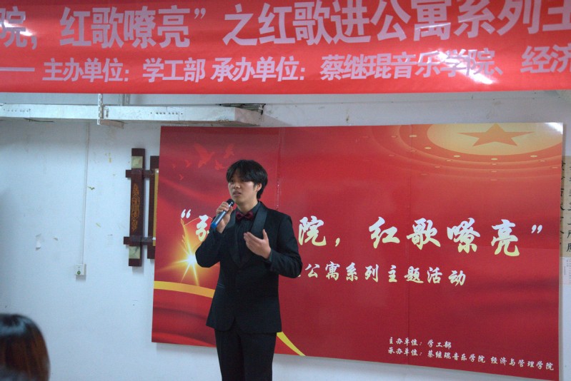 为深入贯彻党的二十大精神,深学细悟党的创新理论,弘扬伟大的建党精神,践行五育闽院,从党的百年奋斗重大成就和历史经验中增长智慧,增强信心,用青春唱响“强国复兴有我”的时代强音,12月20日下午,校学工部宿舍管理与服务中心联合音乐学院、经管学院在三区三易起学吧开展主题为“弘美闽院,红歌嘹亮”的红歌进公寓活动。
