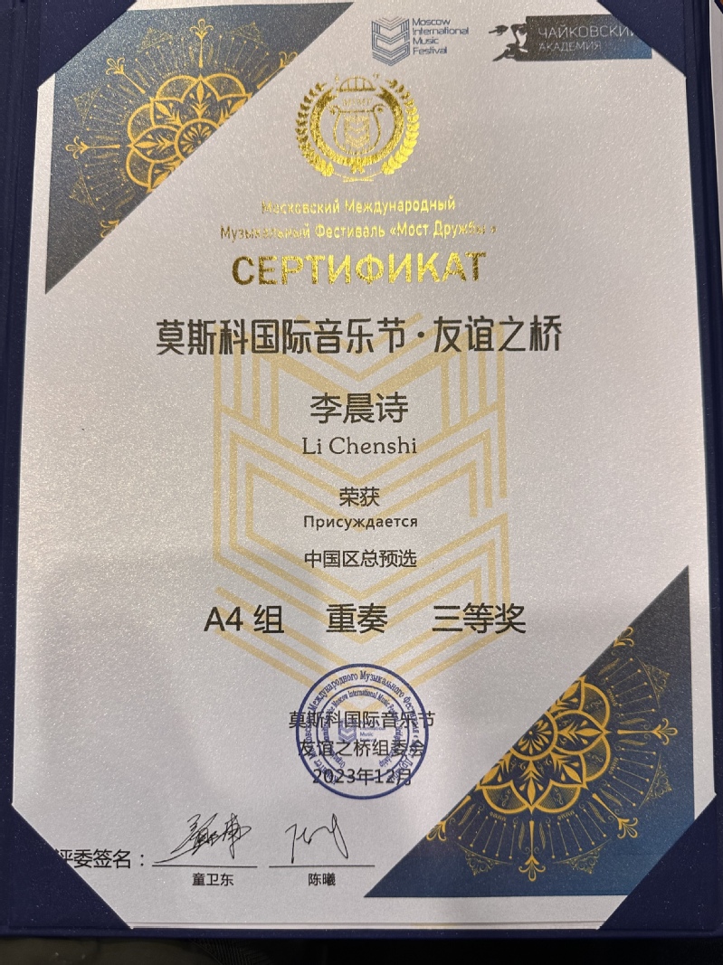 据了解,莫斯科国际音乐节原名为“莫斯科国际音乐节暨莫斯科国立柴可夫斯基音乐学院国际音乐比赛”,成立于2003年,由柴可夫斯基国际大赛获奖者协会及其设立的柴可夫斯基国际学院主办,设立了钢琴、声乐、弦乐、木管及铜管乐四个主竞赛单元以及一系列的音乐教育及文化交流活动。莫斯科国际音乐节是一个具有广泛参与性、包容性、专业性、国际性和权威性的国际音乐艺术资源平台,自2017年起,该音乐节首次进入国内,并已带领百余名优秀的青少年音乐家赴莫斯科参加国际总决赛。