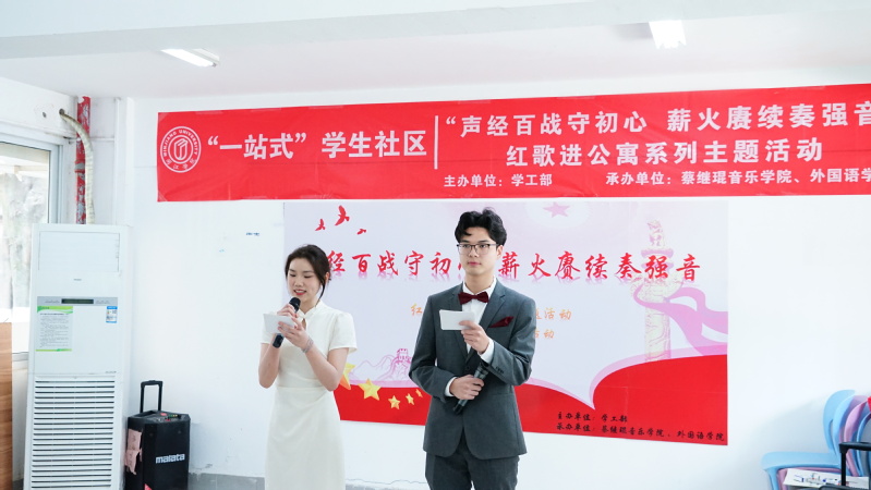 为深入学习贯彻党的二十大精神,积极推进学习贯彻习近平新时代中国特色社会主义思想主题教育在校园内走深走实,围绕“五育闽院”“一站式学生社区”“七个百”等要求,2024320日下午,校学工部宿舍管理与服务中心联合音乐学院、外国语学院在一区二易起学吧开展主题为“声经百战守初心 薪火赓续奏强音”的红歌进公寓活动。