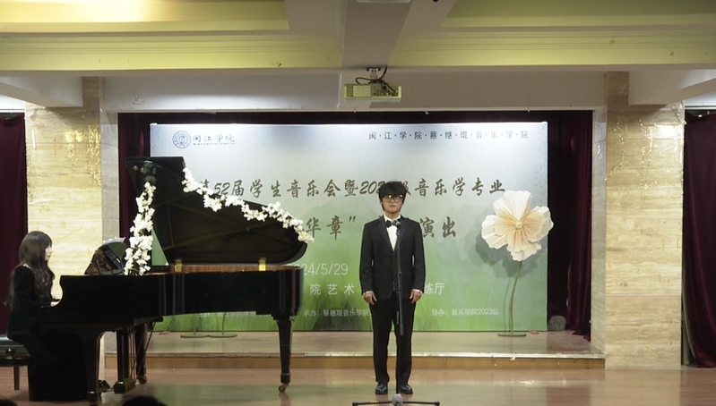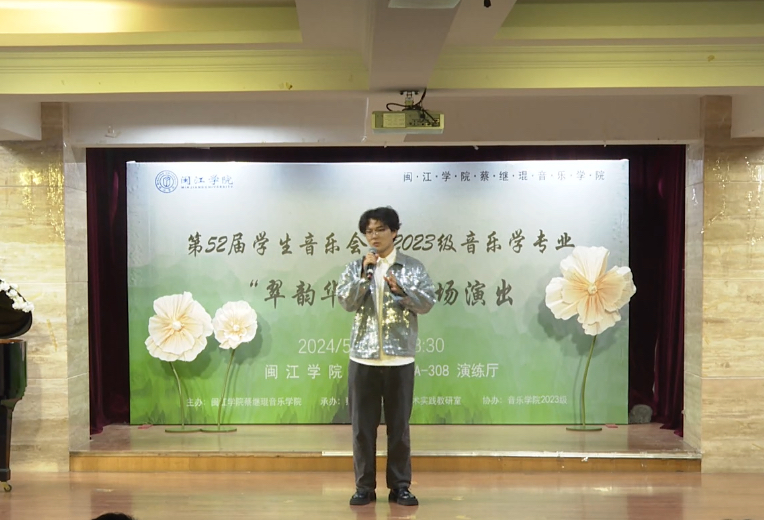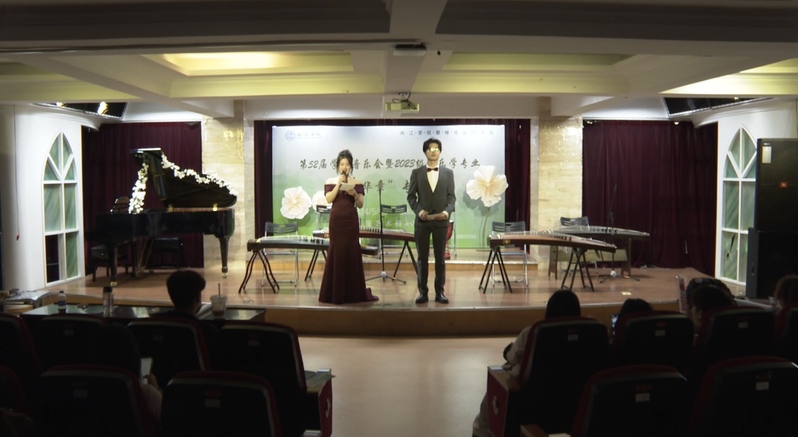 本次演出由2023级音乐学(师范)专业方南希、吴桂吏两位同学主持,采取线上线下同步进行,让社会各界人士通过直播进行欣赏演出,并为演员们喝彩鼓气。