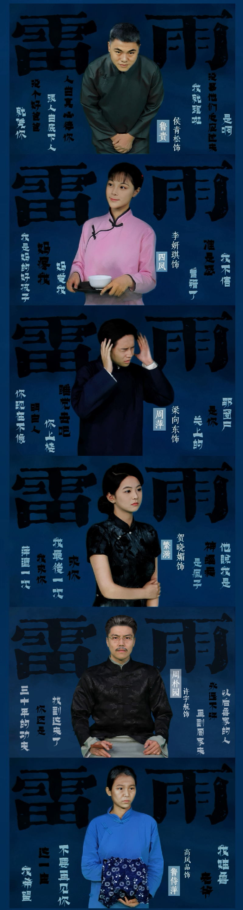 本次中国经典话剧片断汇报艺术实践专场将为观众们献上以下六个中国经典话剧片断: