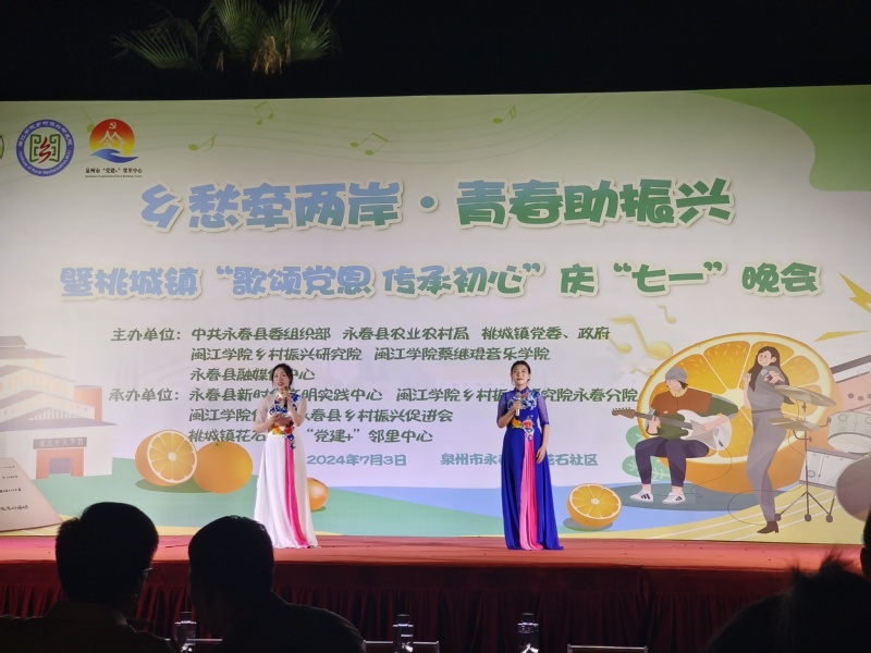 演出在桃城镇花石社区的文化广场举行。活动吸引了数百名干部群众驻足观看,音乐学院实践队的同学们用传统民族乐器演绎《上春山》,带领观众感受民乐的魅力,用《变脸》展现川剧非遗文化精髓,用闽南语演唱歌曲《那些花儿/望春风》拉近与市民群众的距离,用余光中先生的诗歌,用《梨花又开放》、《故乡的云》、《边境的小鸟》等歌曲展现永春的乡愁文化,获得现场观众的阵阵掌声。整场演出也得到了现场观众的一致好评。