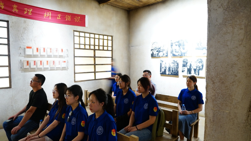 在工作人员的介绍下,借助馆内的陈设,并通过实物、照片、视频等多种形式,借助全息成像、VR、通电玻璃等多媒体现代化技术,实践队员们详细了解了中国共产党从成立到发展壮大的光辉历程。在信仰的味道是甜的展示区,队员们聆听了习近平总书记讲述陈望道翻译《共产党宣言》时的历史故事,了解了信仰的味道是甜的故事来源。在“延安窑洞”体验区,实践队员坐在窑洞,聆听毛主席激昂的党课,在一幕幕的党史故事生动形象地重温在大家眼前,仿佛置身其中,感受党历史脉搏的跳动。这种了“情景式、体验式、互动式”的党内政治生活形式,开拓了队员的眼界,也让实践队的党员同志队严肃党内政治生活,开好党内政治生活有了更深刻的理解。