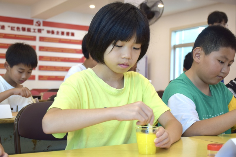 生活处处充满化学。在科学课程中,支教队员徐佳敏和陈凯晶从衣食住行等方面为大家讲解化学的作用,开启化学新世界,并带领同学们动手制作护手霜。同学们非常感兴趣,积极配合支教队员进行制作。