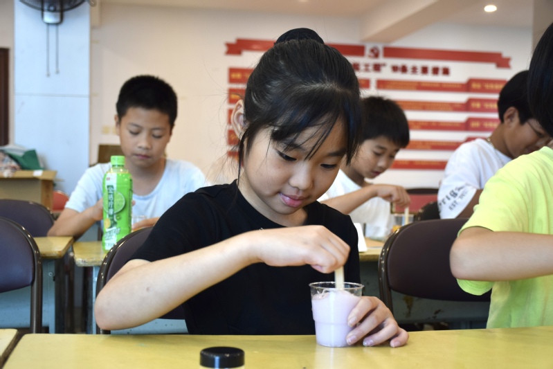 生活处处充满化学。在科学课程中,支教队员徐佳敏和陈凯晶从衣食住行等方面为大家讲解化学的作用,开启化学新世界,并带领同学们动手制作护手霜。同学们非常感兴趣,积极配合支教队员进行制作。