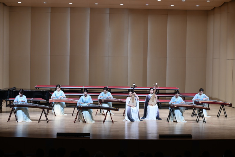 很荣幸能与各位老师同学在校新音乐厅相聚,参演本次的音乐会。我想这也是一次意义非凡的音乐会,我将我的爱国情怀融入古筝的旋律之中,让我深切感受到了祖国的伟大与辉煌。这场音乐会不仅是一次艺术的盛宴,更是一堂生动的爱国主题课,激发了我对祖国的无限热爱。