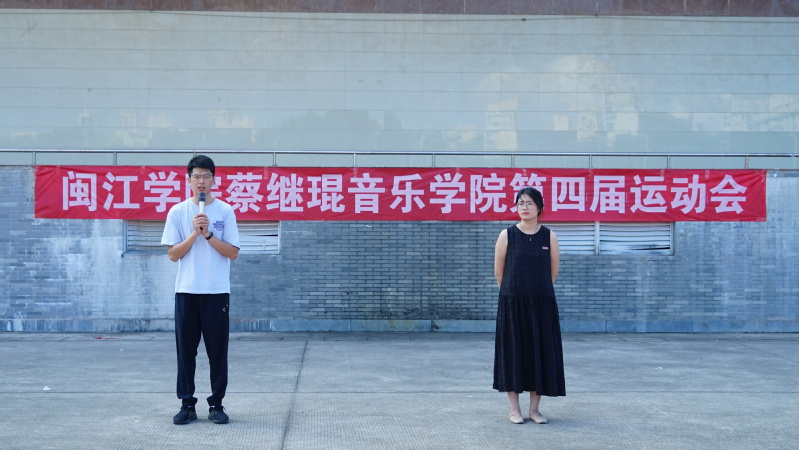 辅导员黄祝泉致开幕辞,他首先代表学院对本次运动会的召开表示热烈祝贺,对精心筹备的团委学生会干部、裁判员和运动员们致以衷心的感谢。他希望全体运动员能够做到:一是遵守比赛规则,配合学生干部有序开展活动,二是秉持“公平、公正、公开”原则,友谊第一,比赛第二;三是注意运动安全,保障人身安全。