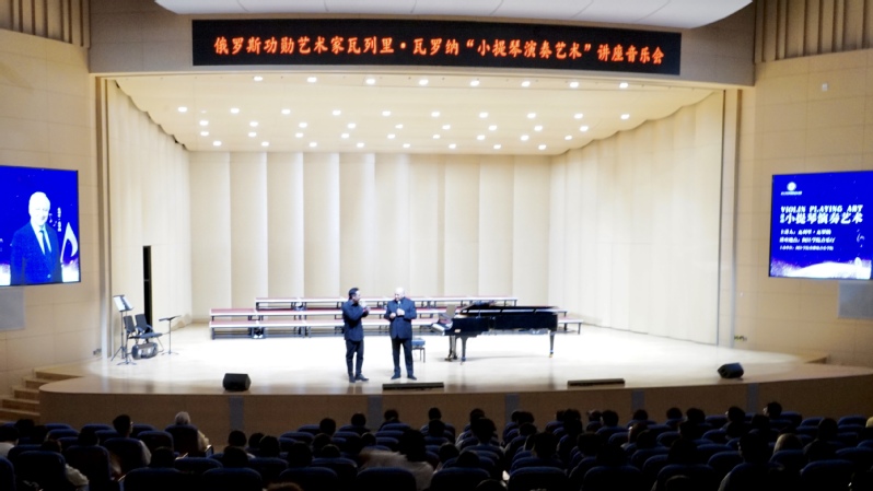 10月24日,“小提琴演奏艺术”讲座音乐会在御书屋 音乐厅圆满举行。演奏嘉宾是俄罗斯功勋艺术家、莫斯科国立音乐师范学院院长瓦列里·瓦罗纳教授,特邀上海音乐学院的王晨老师担任本场音乐会的钢琴伴奏,御书屋 张铠麟博士担任现场翻译,400余位师生在现场聆听欣赏。