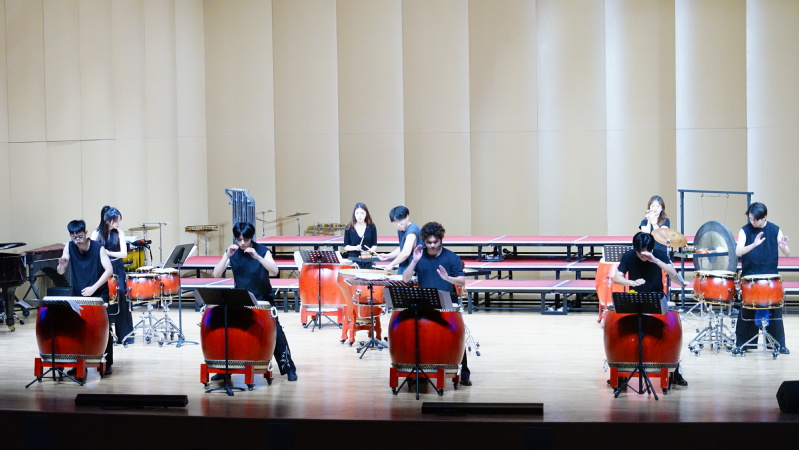 密集的鼓点如同雨滴般急促落下,每个音符都敲打在心头,让人不由自主地紧张起来。116日晚,“生活就是打击乐,打击乐就是生活”讲座音乐会在御书屋 音乐厅圆满举行。此次讲座由福建师范大学打击乐副教授李林携手功夫打击乐团出演,御书屋 2023级音乐学专业章城宇共同参与演奏。音乐学院党委副书记张开全、院长陈俊玲、副院长陆徽、各教研室老师以及全校400余位师生在现场聆听欣赏。讲座由音乐学院院长助理、器乐教研室主任卢盈盈主持。