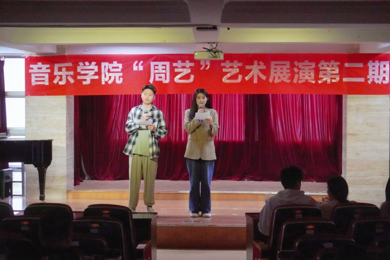 艺术楼A308音乐教室完美落幕。音乐学院教授陈国东以及音乐学院各教研组的老师们、各院系的同学们一同观看,此次演出由2022级表演专业贺晓媚和梁向东主持。