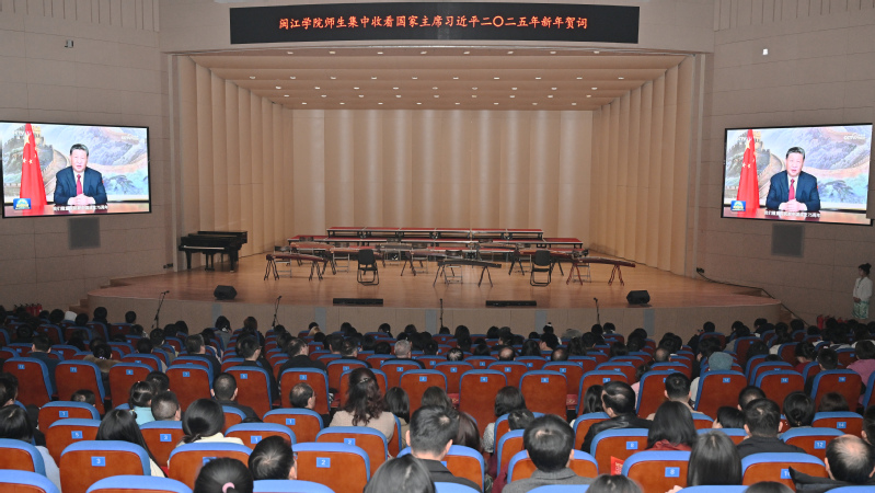 19时,现场师生和来宾共同聆听了国家主席习近平发表的二〇二五年新年贺词,与全国人民一起,回望过往的奋斗路,眺望前方的奋进路。