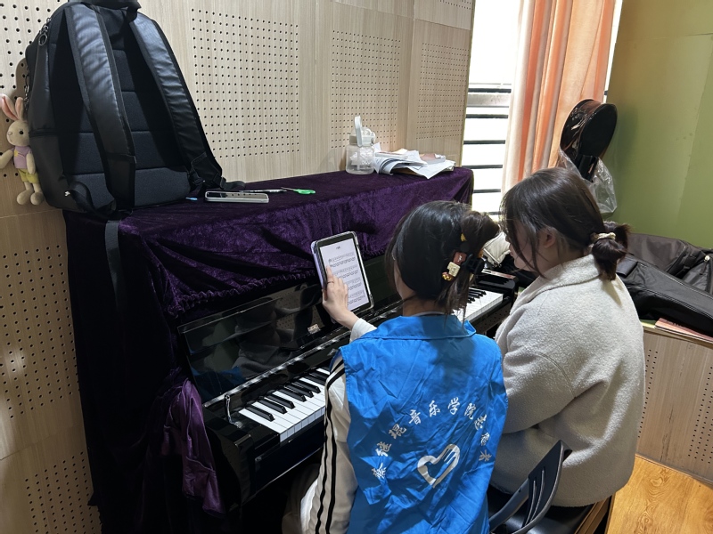 此次活动的开展不仅提升了音乐学子的钢琴教学能力,也让材化学院同学们感受到了音乐的魅力,更是搭建起了一座跨学科交流的友谊桥梁。今后,音乐学院将持续开展系列公益教学活动,持续推进美育浸润校园,为更多学生提供接触音乐、学习音乐的机会,为美好的校园生活增添了一抹亮丽的色彩。