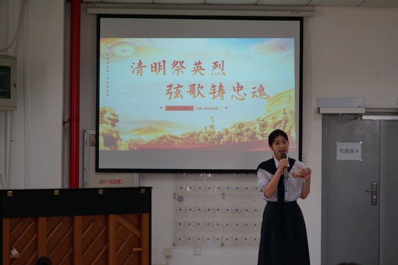 本期微党课由音乐学院学生团委副书记宁旋璇担任主讲。微党课以“歌曲赏析+演唱”的形式进行,沉浸式地带领大家了解先烈的英勇事迹。“四月的春风里,我们站在时间的渡口回望。清明,不仅是一个节气,更是一面映照民族精神的明镜。今天,让我们以音乐为舟,穿越历史的波涛,缅怀革命先烈,铭记英勇历史。”一番话,瞬间将现场氛围引入庄重而温暖的红色记忆之中。