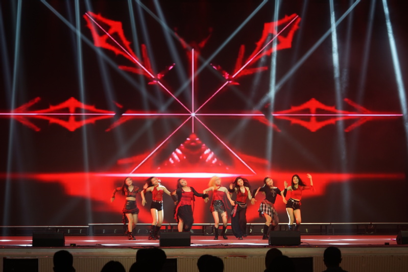 舞台灯光骤然转红,七位舞者身着红裙热力登场,编舞融合力量感爵士与俏皮Hip-hop元素,wave与头部律动精准卡点,既有齐舞时的锐利气场,又有solo段落的个性释放。配合电子鼓点与合成器音效,将原作中“自信即闪耀”的态度诠释得淋漓尽致。当副歌部分标志性旋律响起,舞者们用舞姿点燃全场,让K-pop的动感魅力与青春活力在舞台上碰撞出滚烫的火花。