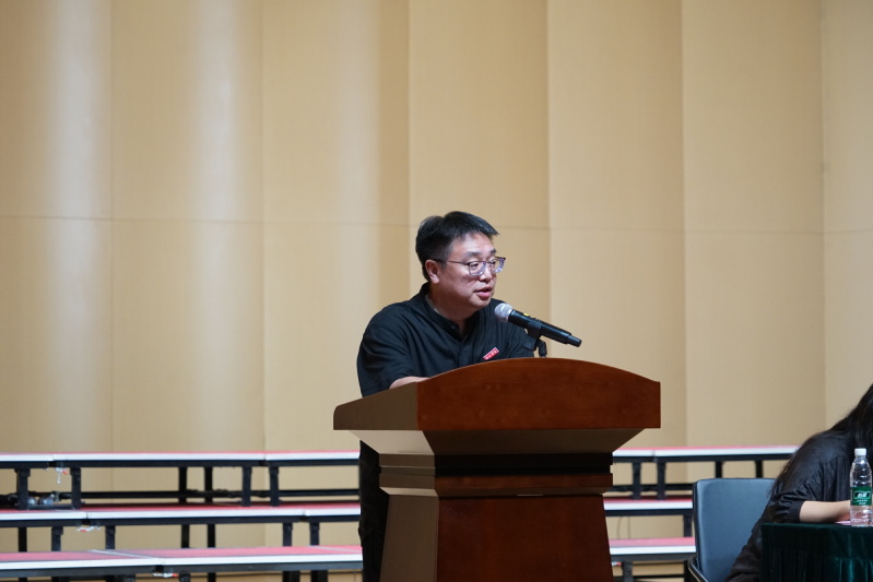 陆徽副院长为新生们讲述了学校光荣办学历史,介绍了音乐学院的办学历程及蔡继琨教授在音乐教育方面的卓越贡献、高尚品格、崇高精神。对新生提出四点殷切期望:一要胸怀家国,坚定文化自信;二要修身立德,弘扬向善向上的力量;三要永葆初心,坚守对艺术的热爱;四要精益求精,在专业追求中不断突破。他勉励全体同学要将个人艺术理想融入国家发展和民族复兴的伟大征程,用艺术讴歌时代、服务人民,争做有信仰、有情怀、有担当的新时代青年。