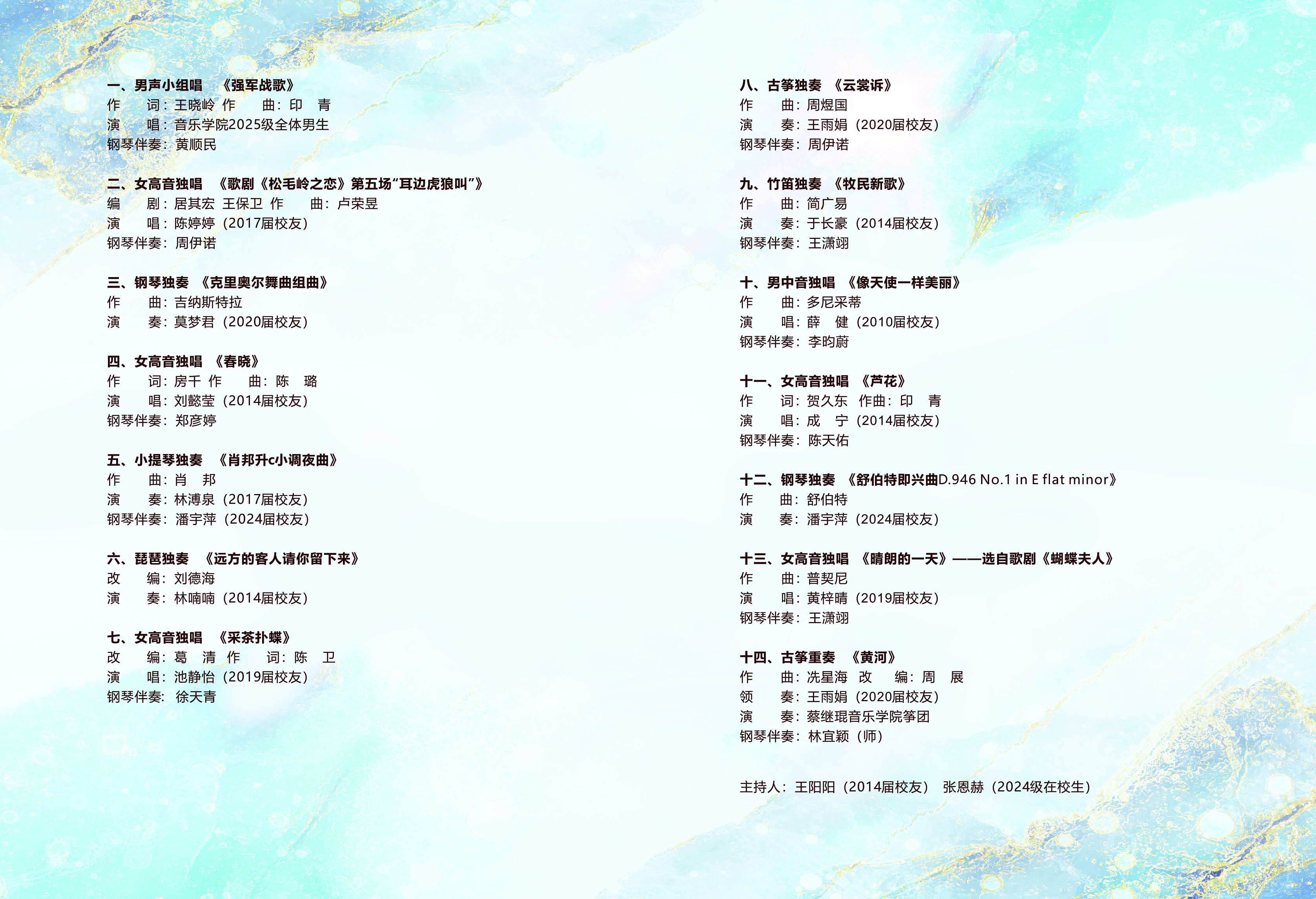 这是一封用音符写就的“家书”,由御书屋 、校友办、保卫处(武装部) 共同呈现,我们不仅准备了耳熟能详的经典曲目,更特别编排爱国强军主题歌曲,让赤子之心与家国情怀在旋律中交响,展现我辈学子风采,传承母校精神之光。