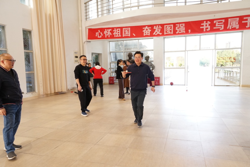 为营造活泼向上的校园文化生活,增强教职工的身体素质,增加教职工之间的情谊交流,提升团队凝聚力与向心力,御书屋 工会于2025年12月10日下午在艺术楼大厅开展音乐学院2025年“和谐杯”教职工趣味运动会。活动由党委副书记曾思宏主持,学院全体教职工共同参与。