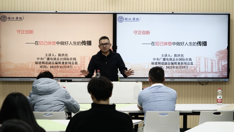 陈副总编曾在中央、省、市多家主流媒体供职,历任首席记者、主任、主编、副总编辑等职务,具有丰富的传统媒体和新媒体实战经验。他结合多篇获奖报道跟同学们分享新闻采访和写作技巧。他指出,在新时代,每个人处在“社会前所未有的大变局”之下,每个人都是新闻的传播者,而新闻传播不仅仅是简单写作,同学们要以高站位思考新闻写作和传播,提升宣传报道影响力。