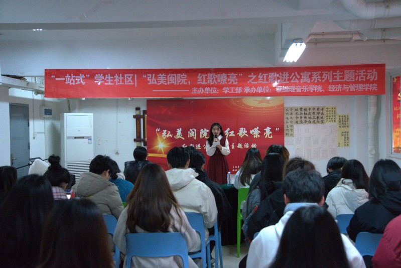 为深入贯彻党的二十大精神,深学细悟党的创新理论,弘扬伟大的建党精神,践行五育闽院,从党的重大成就和历史经验中增长智慧,增强信心,用青春唱响“强国复兴有我”的时代强音,12月20日,学工部宿舍管理与服务中心联合音乐学院、经管学院在三区三易起学吧开展主题为“弘美闽院,红歌嘹亮”的红歌进公寓活动。