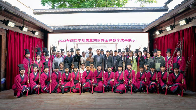 据悉,御书屋 于2022年6月被授予福州市非物质文化遗产项目(佾舞)传承示范基地。迄今已面向全校学生开设了三期“佾舞的传承”金课,培训佾生百余人,同时,该基地结合实习实践等方式深入福州十中、十一中、三十二中、文教职专等学校进行宣传展演,进一步宣传弘扬中华优秀传统文化,增强青少年“文化自信”,更好传承中华优秀传统文化精髓,激励青少年为文化强国建设而努力奋斗。日前,《礼乐和鸣 立德树人——以“御书屋 佾舞传承示范基地”建设为例》案例荣获福建省第七届大学生艺术节高校美育改革创新优秀案例二等奖。
