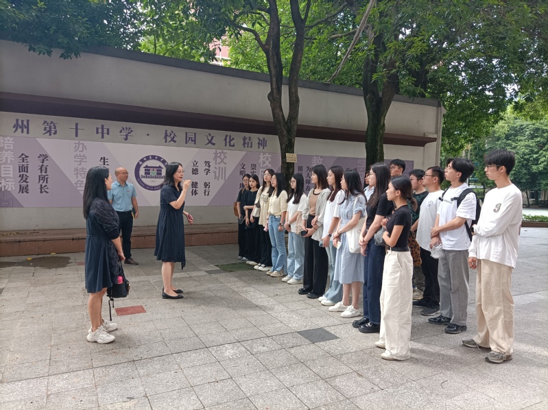 见面会后,实习生们在许京老师和周锦华老师的带领下参观了校园,熟悉教室和备课室等,并与音乐组的6位老师与实习生们进行了深入交流。