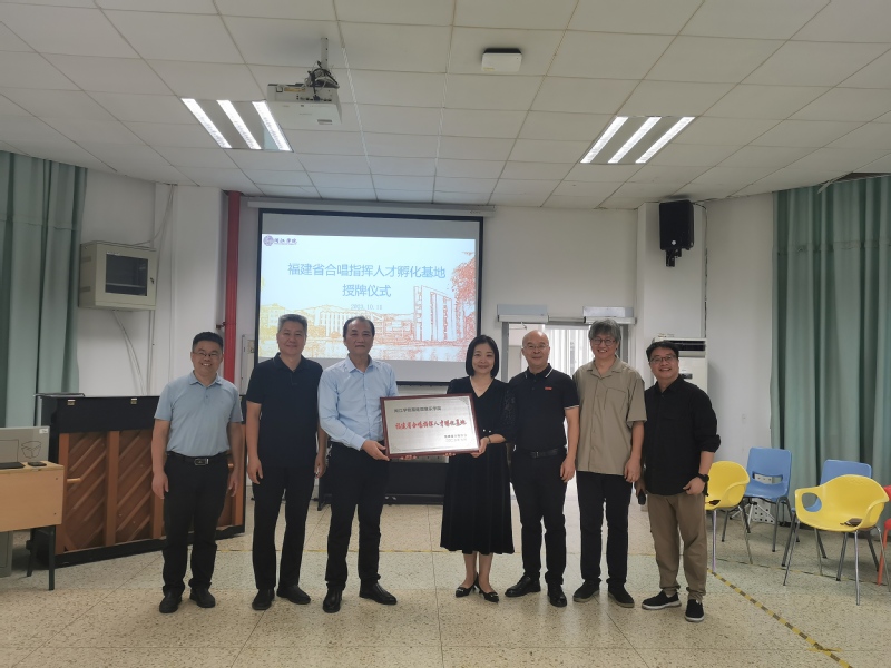 20231011日上午,福建省合唱指挥人才孵化基地授牌仪式在御书屋 合唱教室举行。中国合唱协会常务理事、福建省合唱协会会长邵宁教授,副会长兼秘书长李冰,副会长、福州市音乐家协会副主席盛勇及音乐学院班子成员出席授牌仪式。仪式由学院陆徽副院长主持。