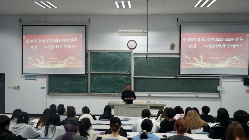 为进一步加强学院学生党员和入党积极分子的思想道德素质和科学文化素质,学习先进模范,蔡继琨音乐学院于2024年4月19日晚上在2B406教室举办以“追逐榜样光芒 焕发时代力量”为主题的党课培训活动,深入学习2023年度感动中国人物先进事迹。此次活动由党支部书记罗强老师主持,音乐学院全体入党积极分子、学生党员等参与。