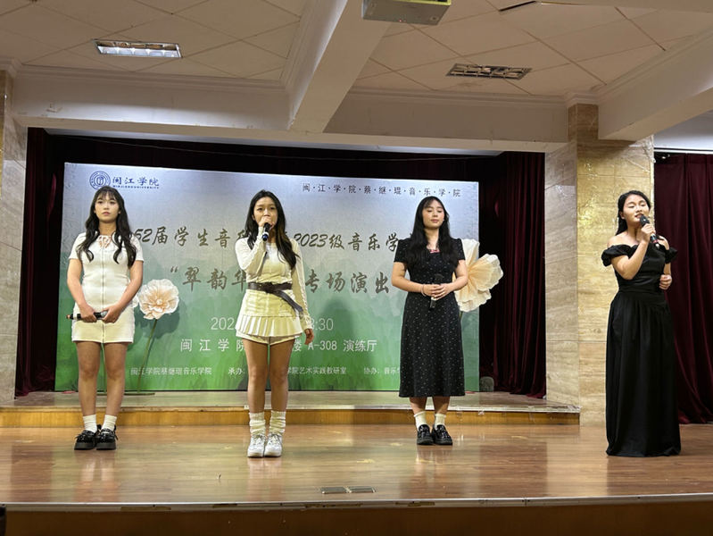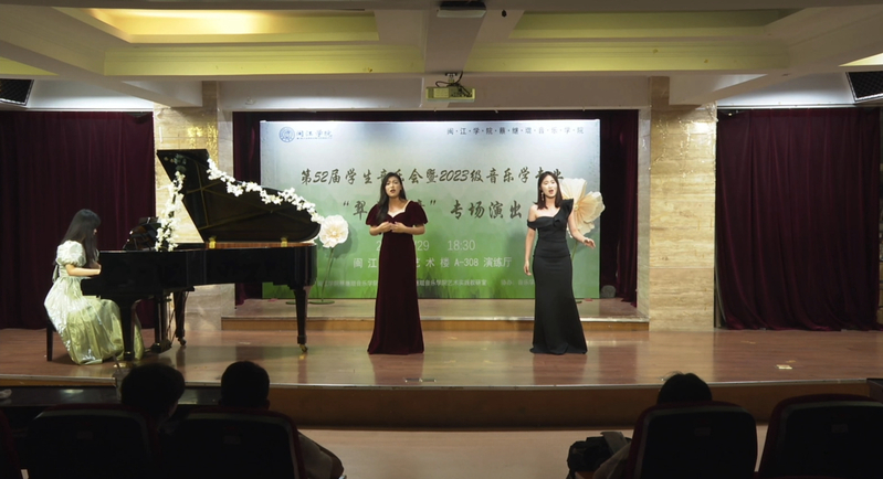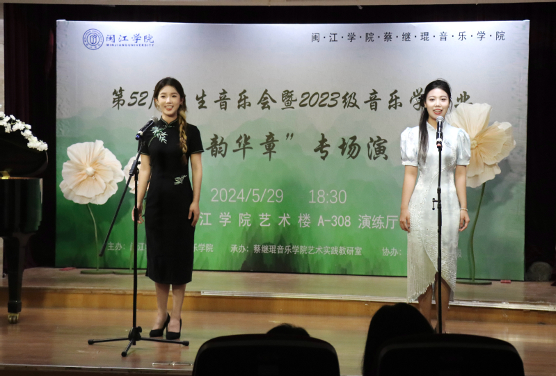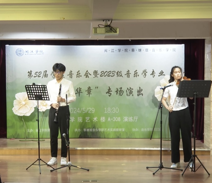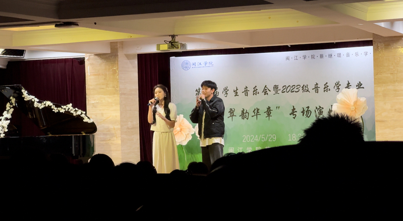 本次演出由2023级音乐学(师范)专业方南希、吴桂吏两位同学主持,采取线上线下同步进行,让社会各界人士通过直播进行欣赏演出,并为演员们喝彩鼓气。