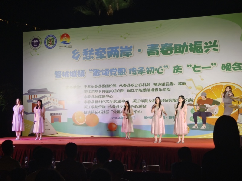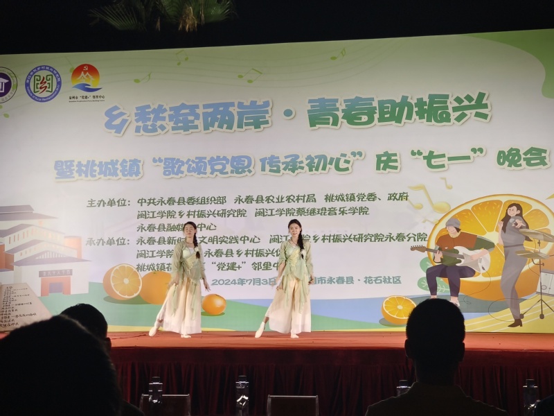演出在桃城镇花石社区的文化广场举行。活动吸引了数百名干部群众驻足观看,音乐学院实践队的同学们用传统民族乐器演绎《上春山》,带领观众感受民乐的魅力,用《变脸》展现川剧非遗文化精髓,用闽南语演唱歌曲《那些花儿/望春风》拉近与市民群众的距离,用余光中先生的诗歌,用《梨花又开放》、《故乡的云》、《边境的小鸟》等歌曲展现永春的乡愁文化,获得现场观众的阵阵掌声。整场演出也得到了现场观众的一致好评。